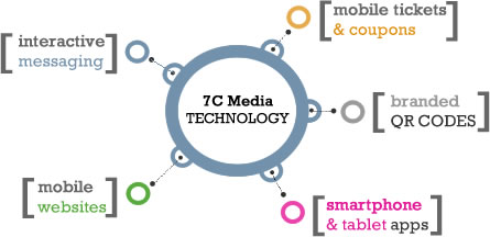 | PLATFORM WITH STRATEGY. Our cloud based mobile marketing platform enables the most successful brands to create, manage and analyze mobile marketing campaigns worldwide. The platform provides businesses the ability to connect with mobile devices and carriers throughout the world. 7C Media's capabilities allow you to integrate the power of messaging, smartphone apps, mobile web and QR codes seamlessley across all channels. When combined with our managed services offering, we can guarantee execution of mobile marketing campaigns that are effective, memorable and successful. |
